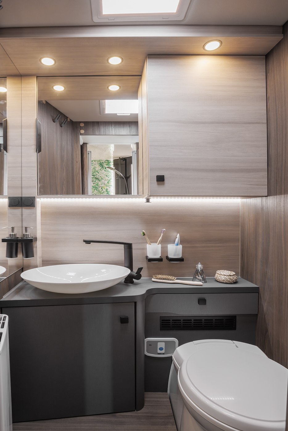 • Réservoir d'eau fraîche et d'eaux usées dans un bac de fond chauffé et isolé