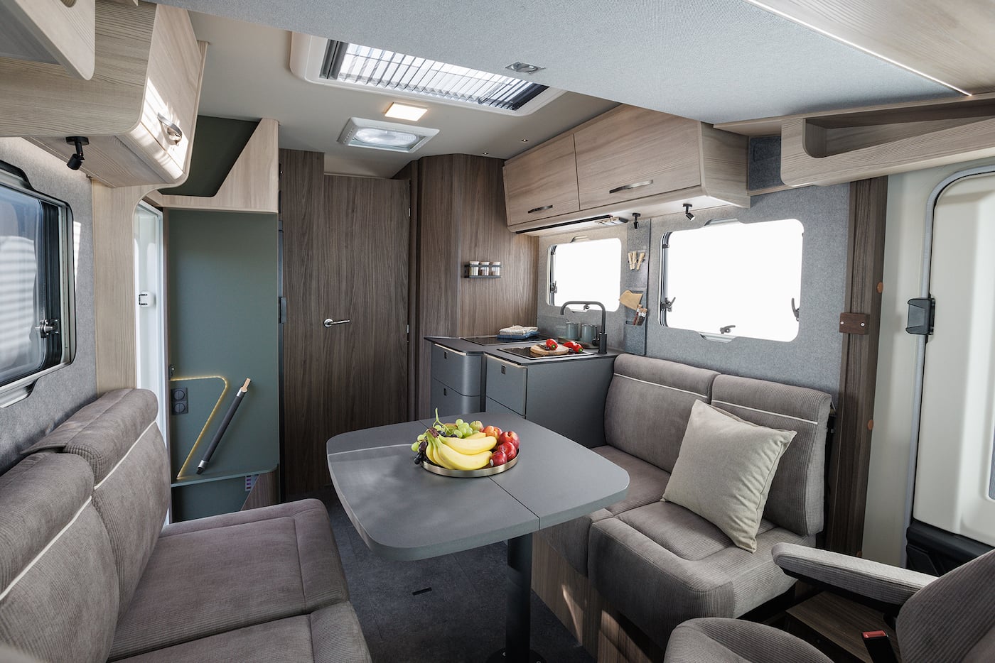 L'Eura Mobil Integra Line GT séduit par son design dynamique et élégant, un MB Sprinter avec un châssis surbaissé spécial AL-KO, un double plancher de 30 cm avec trois zones de chargement, un bac de rangement extensible des deux côtés, une cabine courte, des intérieurs exclusifs (Natural Heritage ou Chalet Rustico), une hauteur debout de 2,05 m et un équipement de pointe avec batterie au lithium et chauffage Alde. L'équipement est d'ores et déjà conforme au cadre applicable à partir de 2026 en matière de systèmes de sécurité et d'assistance.