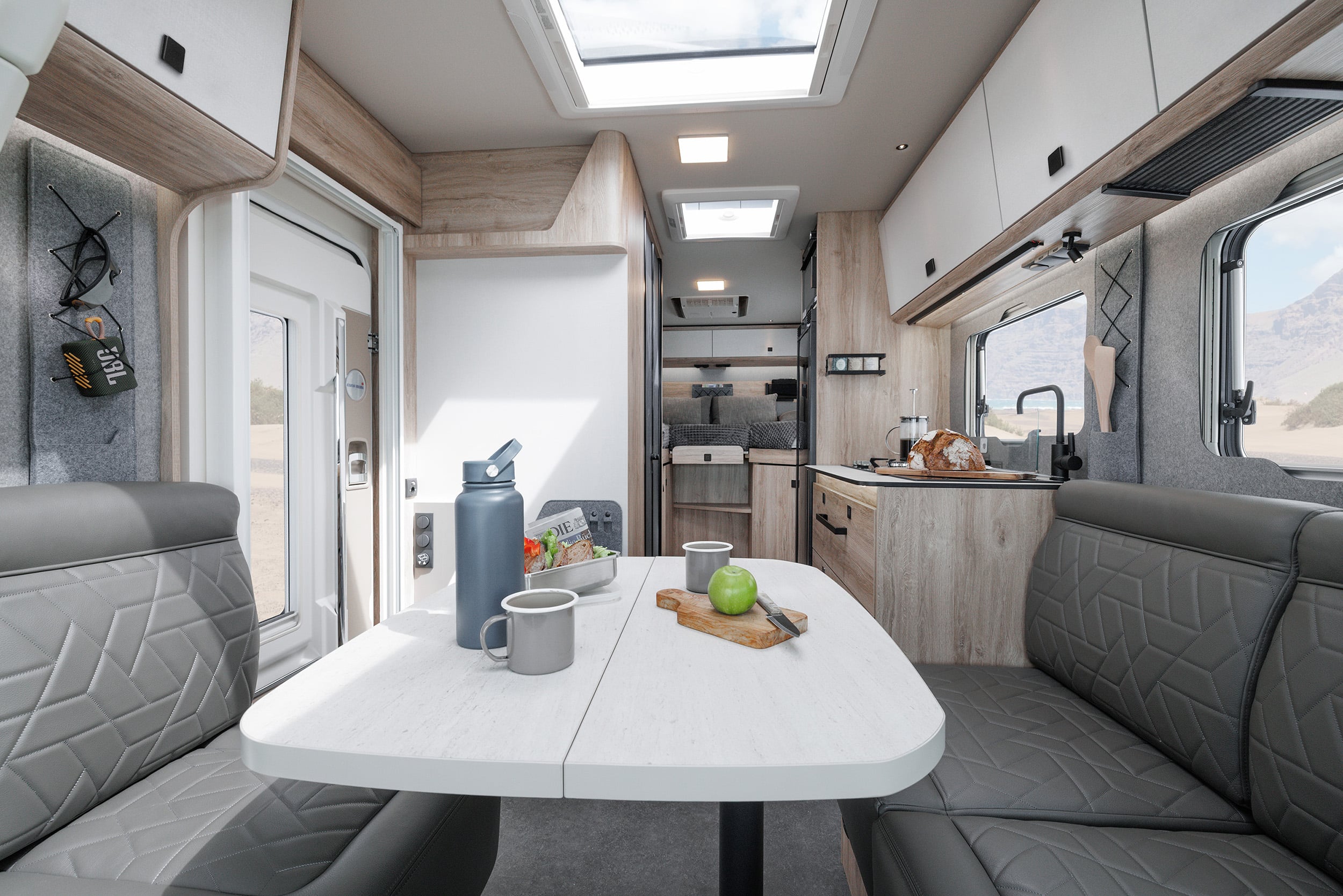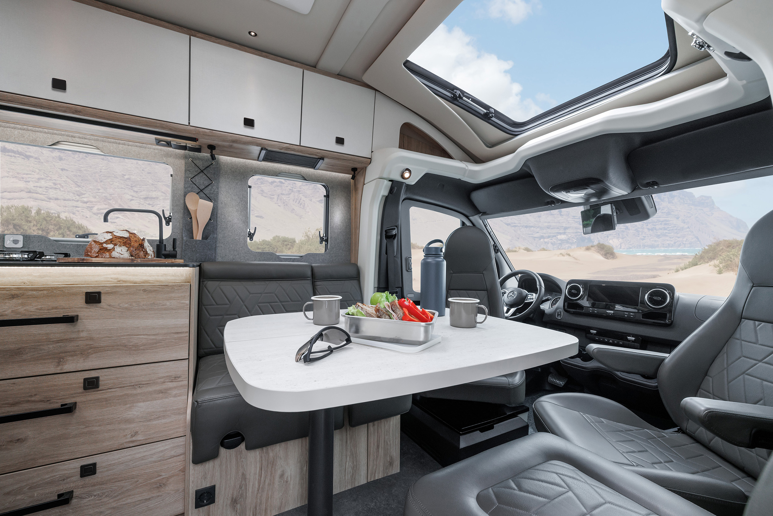 Sur le toit également, différentes caisses de transport modulaires peuvent être installées en toute sécurité. Dans le détail également, Eura Mobil s'est déjà orienté au cours de la saison 2024 encore plus vers les exigences rudes en dehors des routes goudronnées. Ainsi, les tiroirs de la cuisine ont été sécurisés par des doubles fermetures. En option, il est également possible d'installer un chauffage au sol dans la cabine du conducteur.