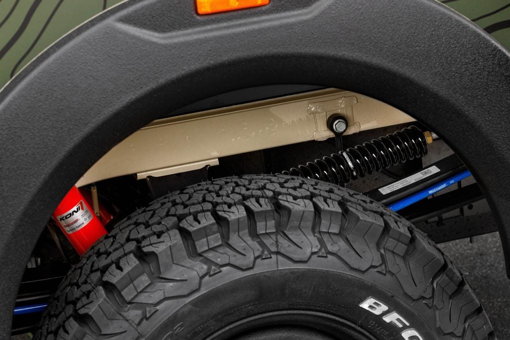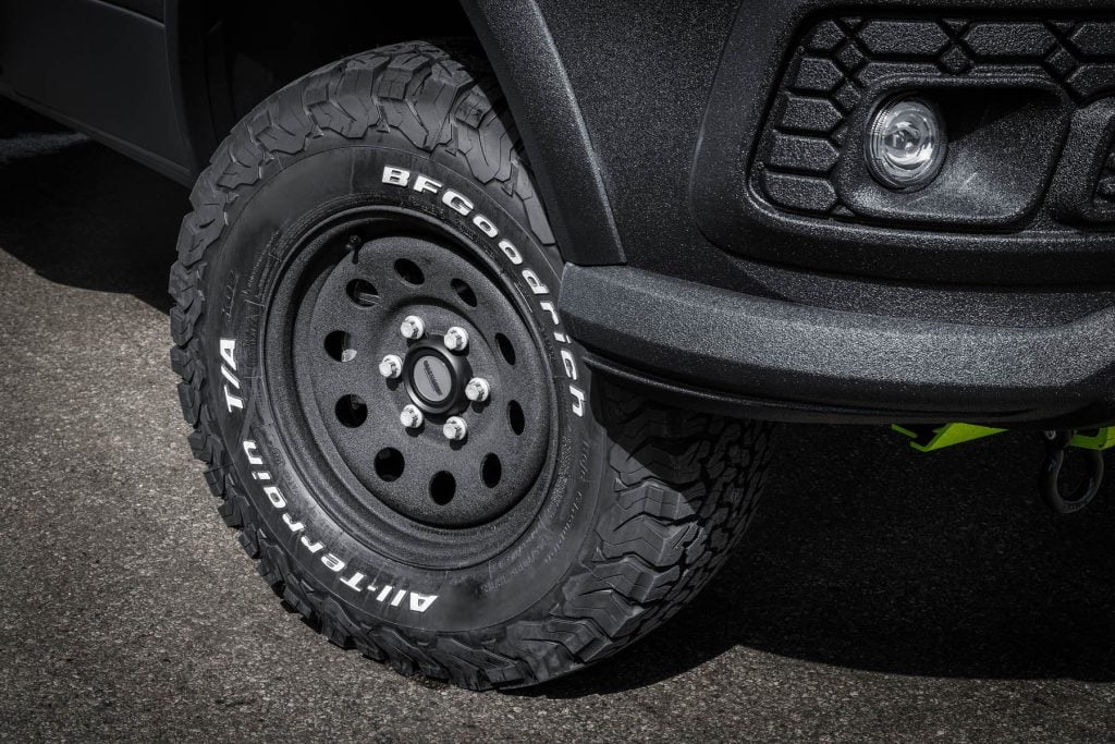 Pour protéger le moteur, la boîte de vitesses et le réservoir lors de trajets exigeants, nous avons installé des grilles de protection robustes sur le soubassement. Un tuba assure l'arrivée d'air lors des passages dans l'eau, tandis qu'un éclairage périphérique renforcé à l'avant garantit une visibilité optimale. Et en cas d'urgence, l'"Escape" est équipé d'une Kit de sauvetage et de récupération qui contient des cales de sable et de montagne ainsi qu'un compresseur de pneus et un produit de remplissage.