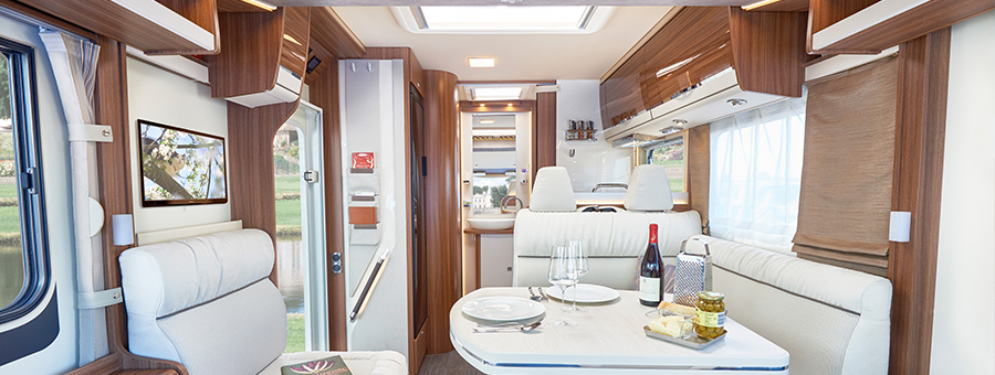 Ceux qui recherchent une combinaison classique et élégante opteront pour les garnitures beige clair en tissu ou en cuir, qui soulignent particulièrement le caractère luxueux de l'habitacle. L'ambiance "Navarra" est une alternative sans supplément de prix à l'intérieur "Chalet" pour les séries Profila T, Profila RS et Integra Line.