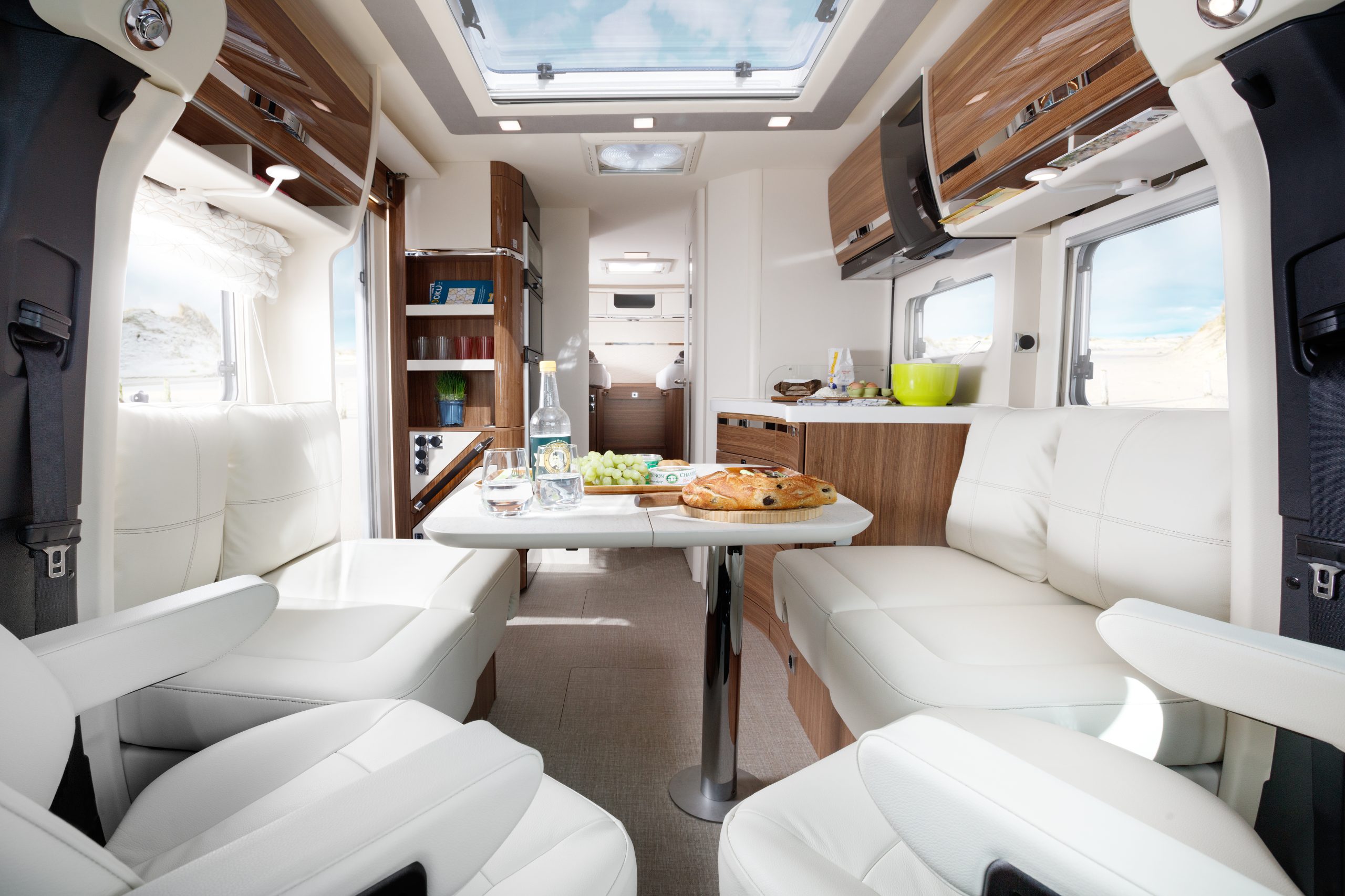 Der mit einem ALKO-Tiefrahmenfahrgestell verbundene Contura mit Mercedes-Benz Fahrgestell trägt einen besonders verwindungsfesten, langlebigen Aufbau, der mit Warmwasserheizung und stauraumoptimierten Doppelboden zu Reisen von beliebiger Dauer in jeder Jahreszeit einlädt. Sorgfältige Detailarbeit wird dabei nicht nur im Exterieur sondern auch innen sichtbar: der optisch fließende Übergang der Oberschränke vom Wohnraum in das Fahrerhaus wird an der Decke vom „Starlight Dome“ getauften, zweiteiligen Panoramaglasdach begleitet, das exklusiv bei Eura Mobil zum Einsatz kommt.