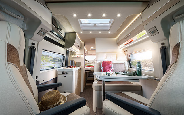Sichtbar anders: Im neuen Premium Van von Eura Mobil verwandelt das exklusive Ambiente jeden Moment in einen besonderen Augenblick. Spüren Sie die edlen Materialien und erleben Sie die individuellen Details, die den Eura Mobil Van zu Ihrem ganz persönlichen mobilen Zuhause machen. Nehmen Sie sich die Zeit und lassen Sie das Interieur auf sich wirken….
