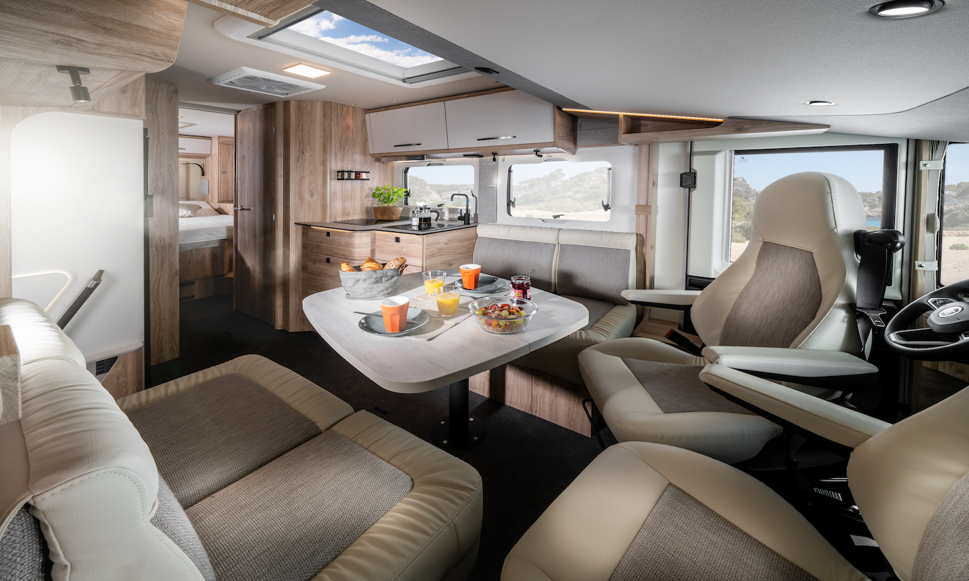 Der Eura Mobil Integra Line bietet einen winterfesten, beheizten Doppelboden, isolierte und beheizte Wassertanks, elektrische Abwassertankentleerung, serienmäßige Alde Warmwasserheizung, eine Gesamthöhe unter 2,90 m und grundrissabhängiges Isofix für flexibles und komfortables Reisen.
