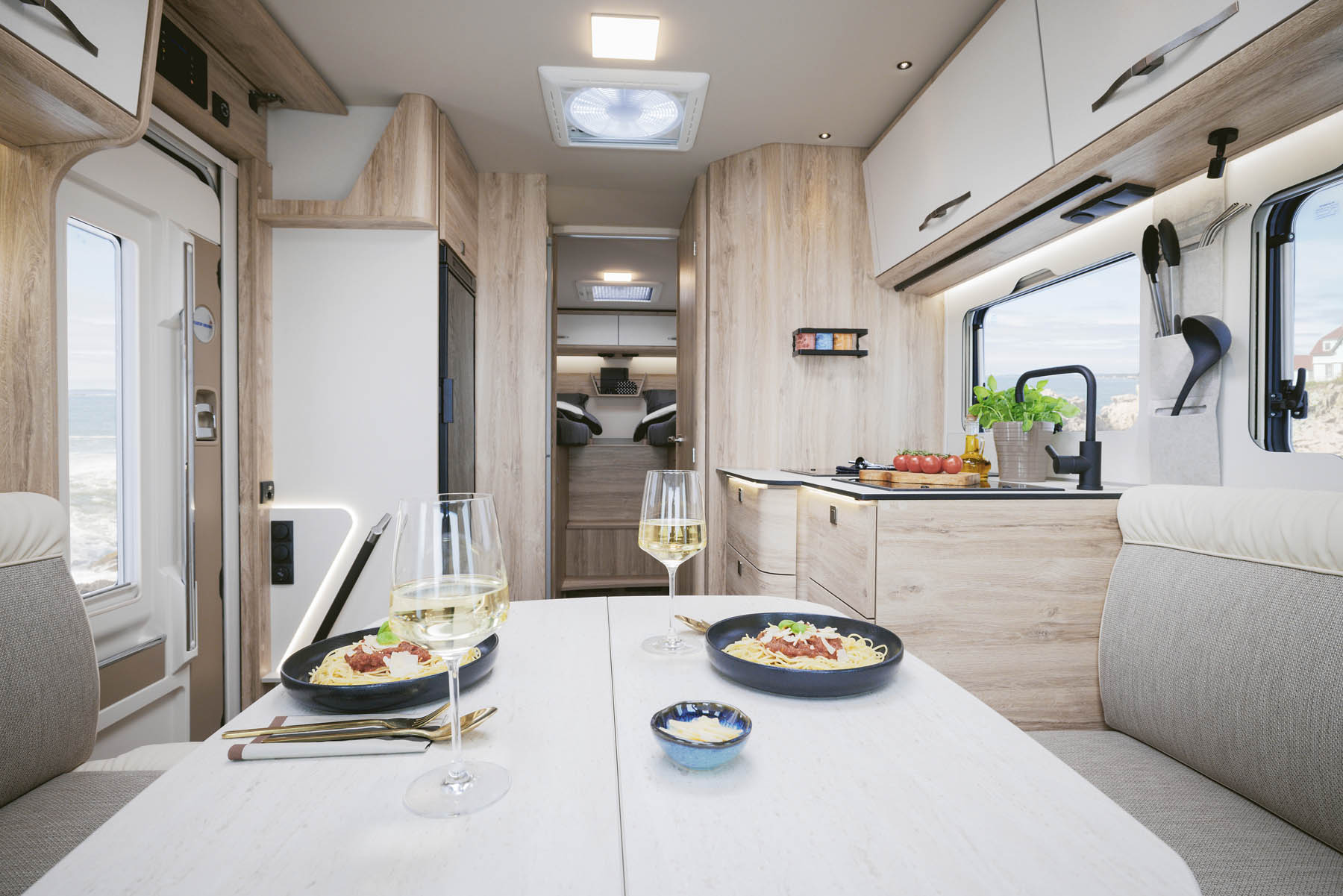 Dank exklusiver Chassis Aufbaukombination zeigt sich der neue „Freestyle“ auf rund 7,50m Länge als durchtrainierter und gewichtsoptimierter Komfort-Tourer mit dynamischen Fahreigenschaften für 2 bis 4 Personen.